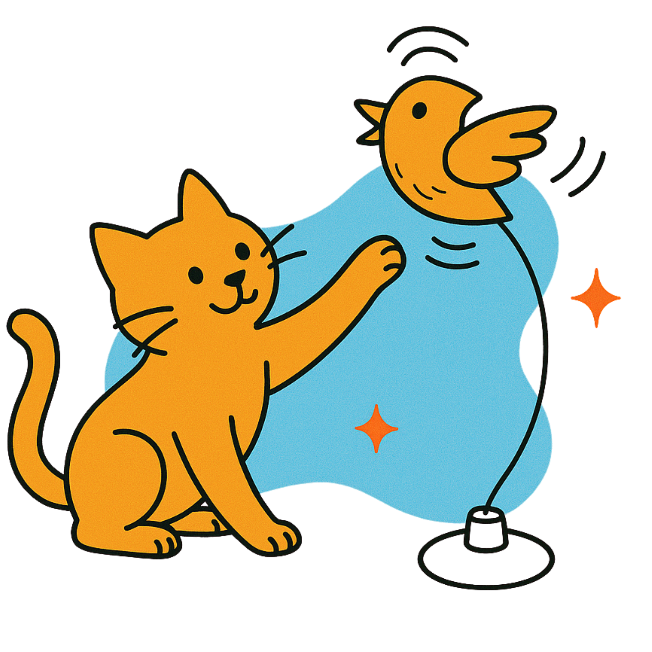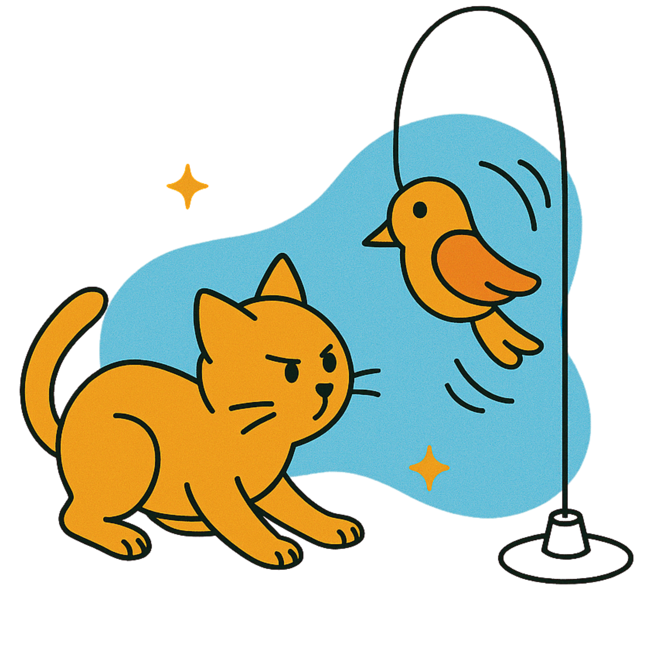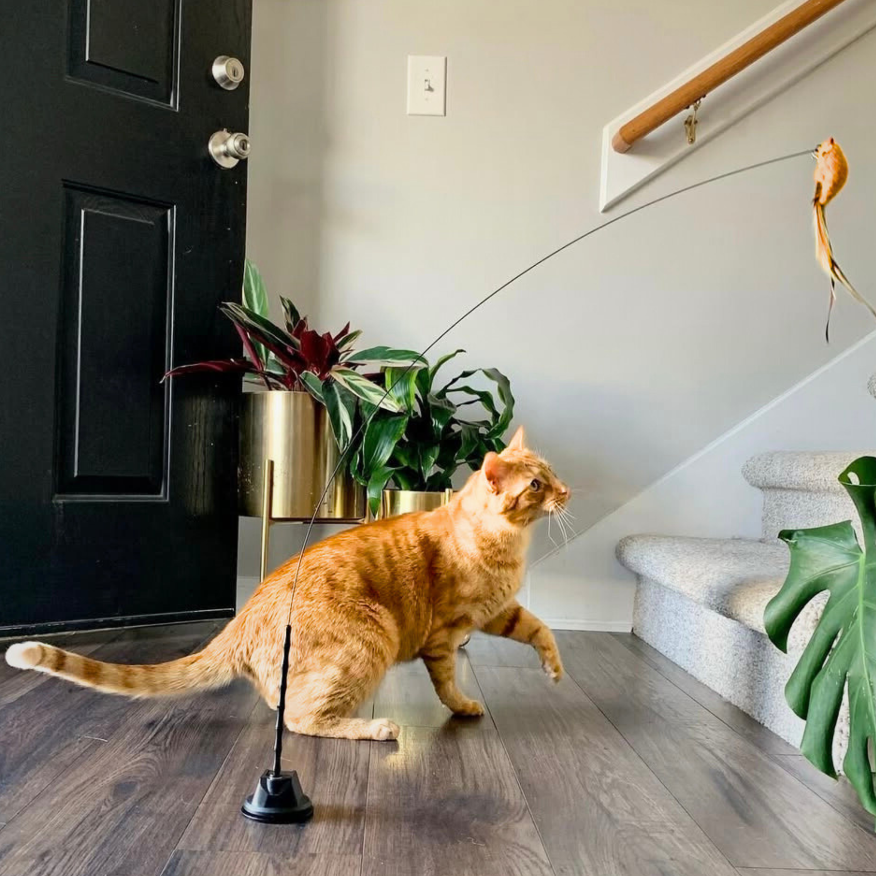 Natural Motion Design — Flexible wire and spring-loaded base mimic real bird movement to engage your cat’s hunting instincts.